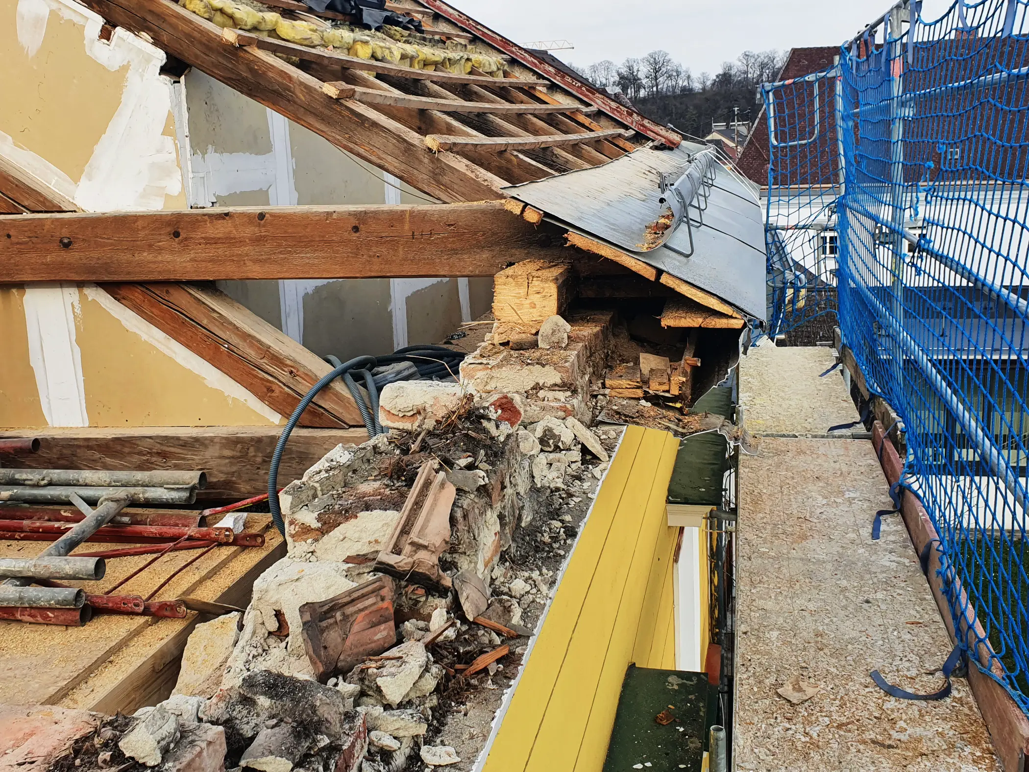 🔹 Präziser Dachabbruch, um die bestehende Dachgeschosswohnung nicht zu beschädigen.