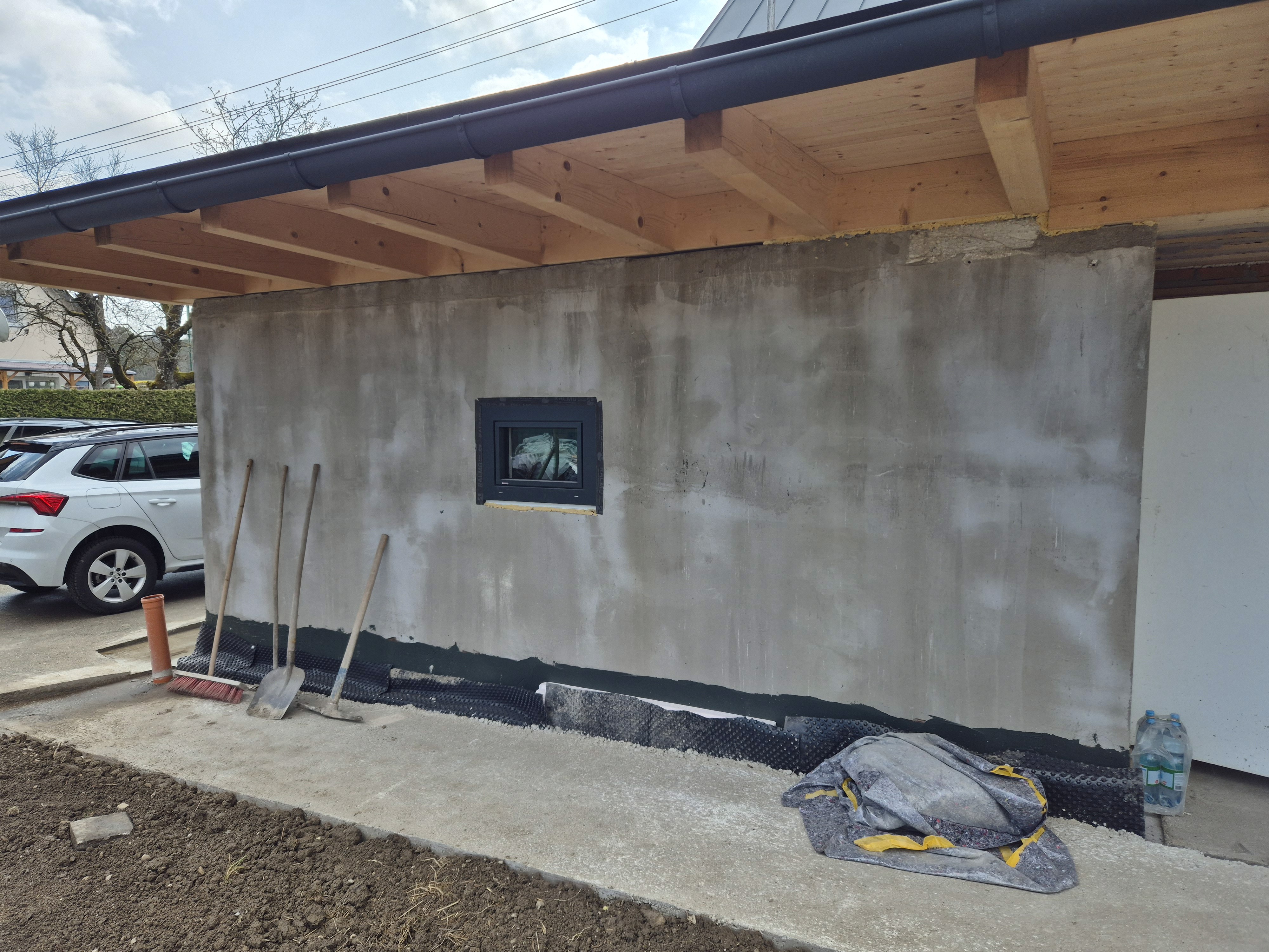 Mit dem Ständerwerk wurde der Untergrund ausgeglichen um eine perfekt senkrechte Fassade zu erhalten.