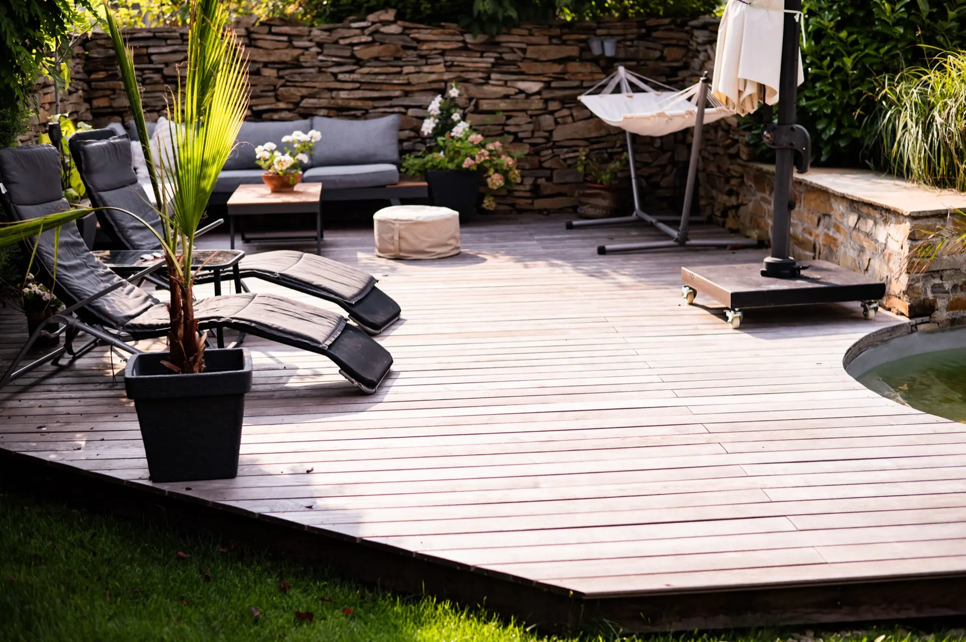 Ein Platz zum Entspannen und sonnen nach dem Baden - Das muss eine Holzterrasse bieten.