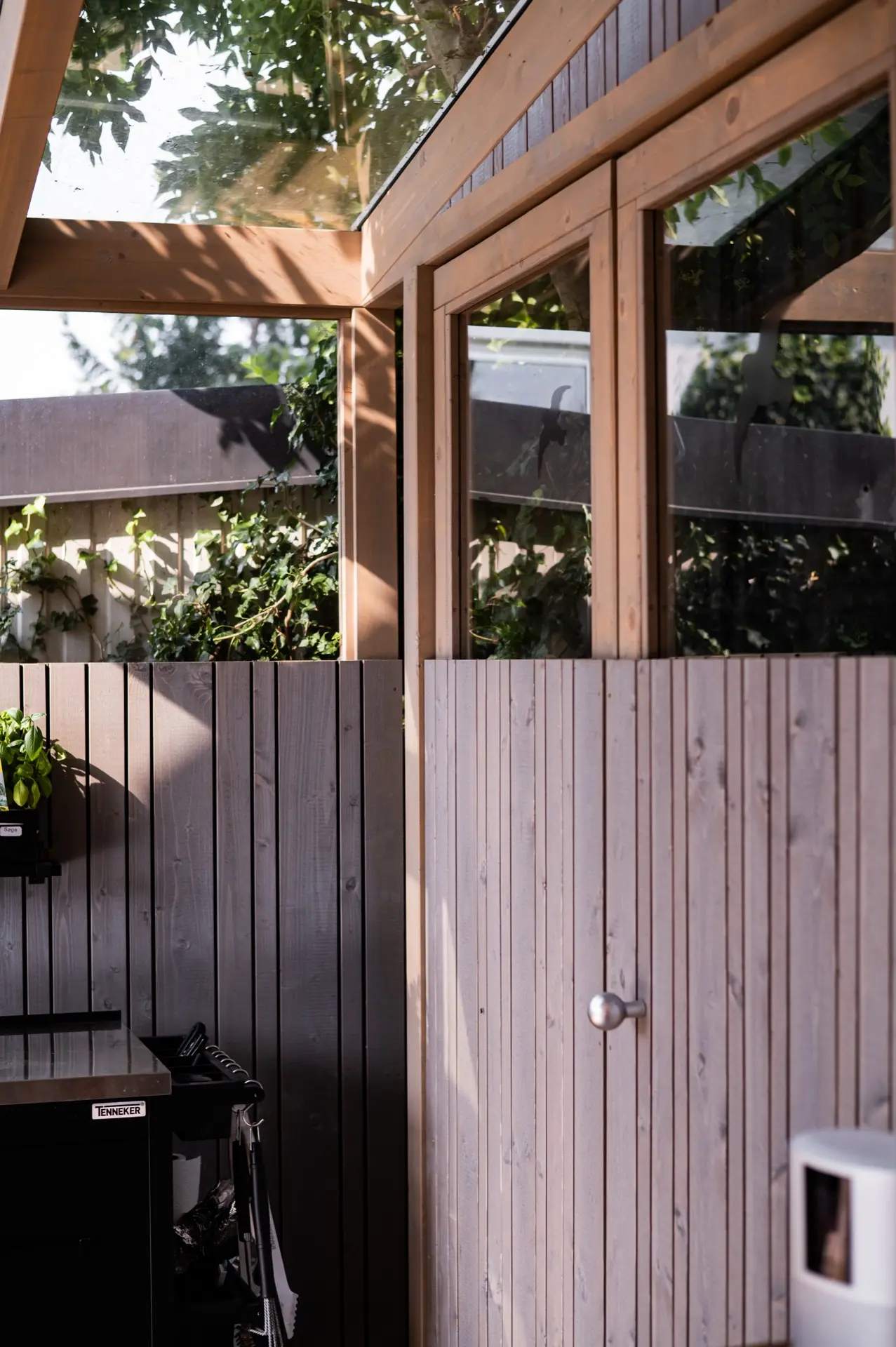 Die 2-flügige Tür ermöglicht den Durchgang in den Bereich hinter dem Grillplatz.